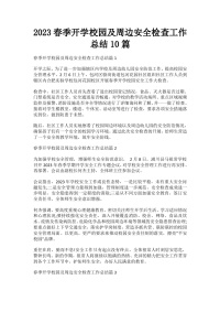 2023春季开学校园及周边安全检查工作总结10篇