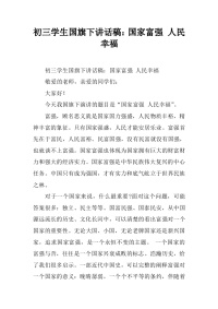 初三学生国旗下讲话稿:国家富强 人民幸福[推荐]