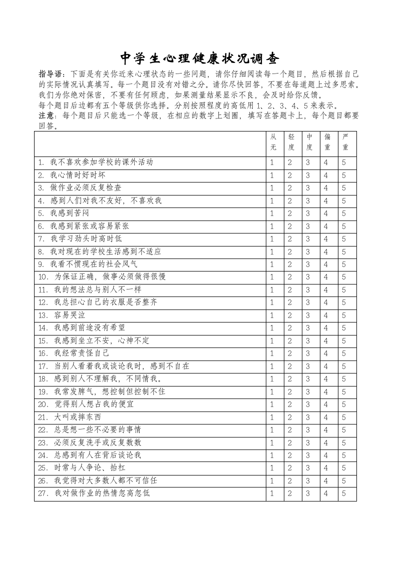 首页安全资料12.中学生心理健康量表