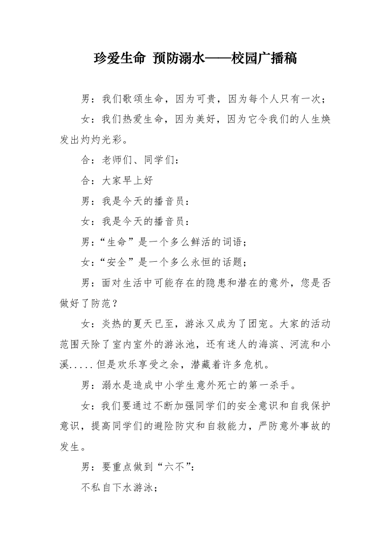 首页安全资料13 珍爱生命 预防溺水 校园广播稿