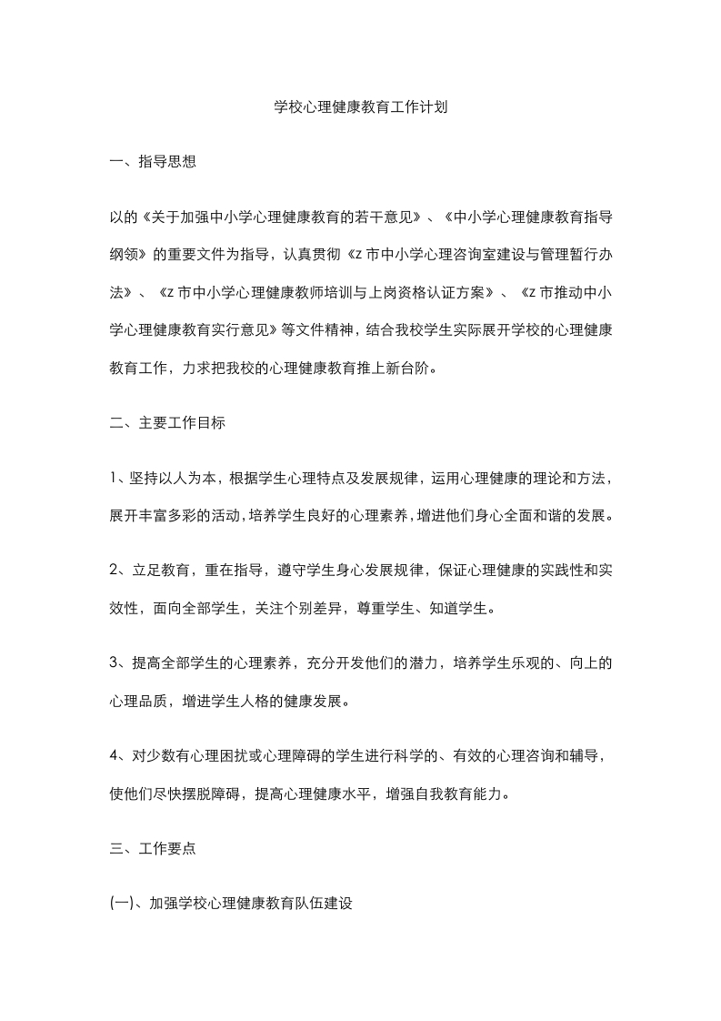 10.学校心理健康教育工作计划