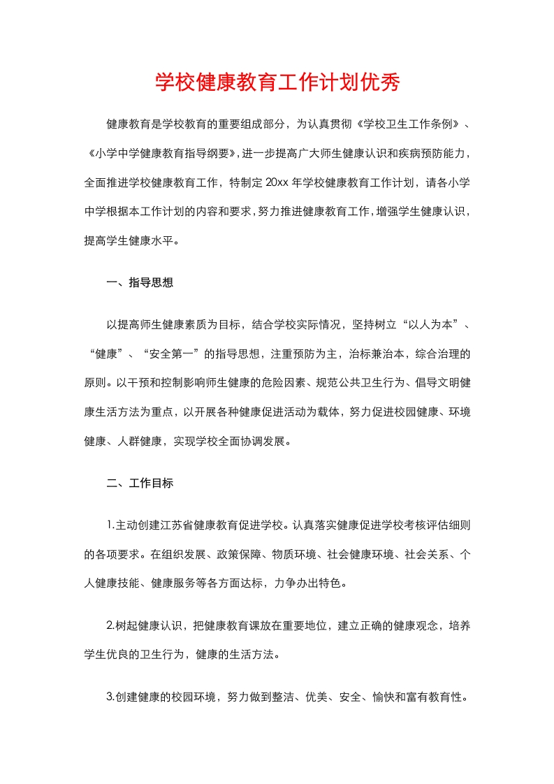 首页安全资料13.学校健康教育工作计划优秀