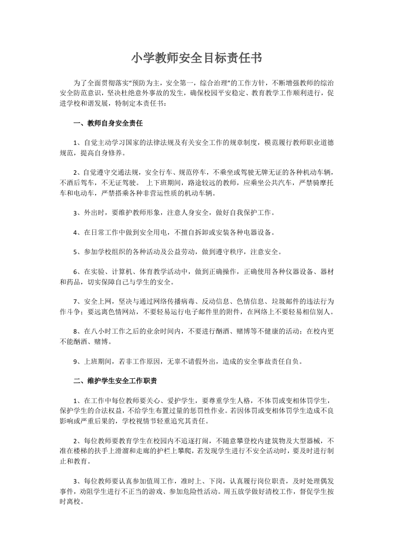 首页安全资料14.小学教师安全目标责任书