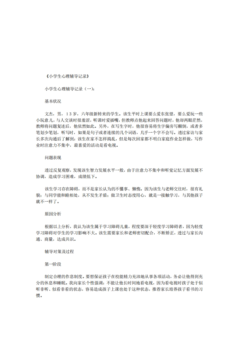 首页安全资料14.小学生心理辅导记录个案 案例(1)