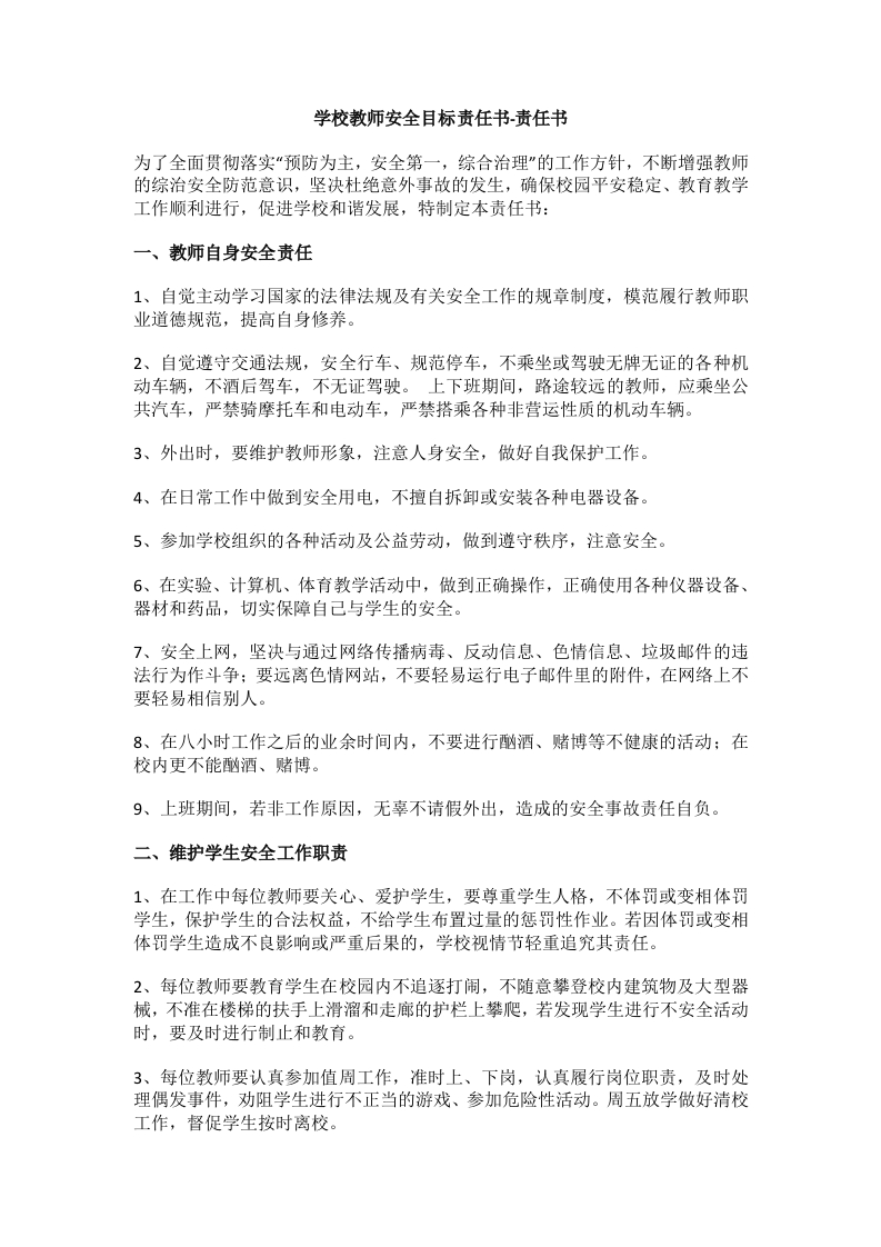15.学校教师安全目标责任书