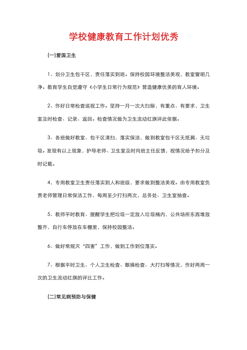 16.学校健康教育工作计划优秀