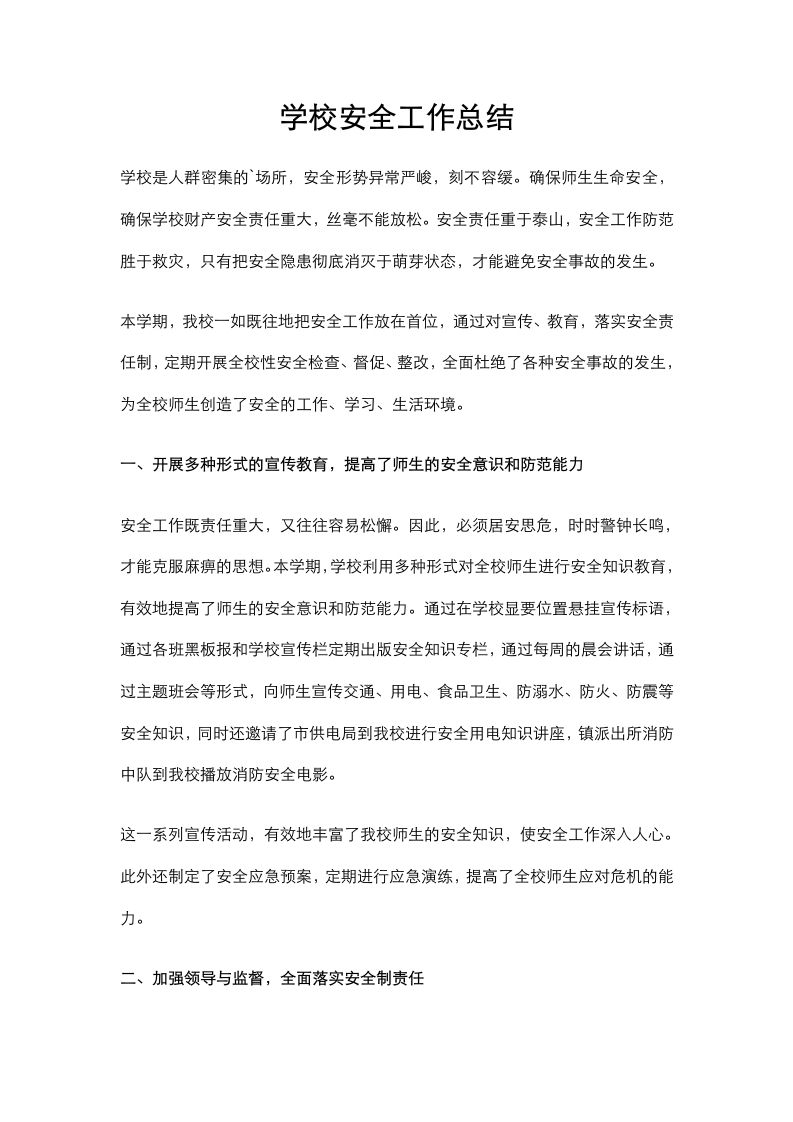 首页安全资料10.学校安全工作总结