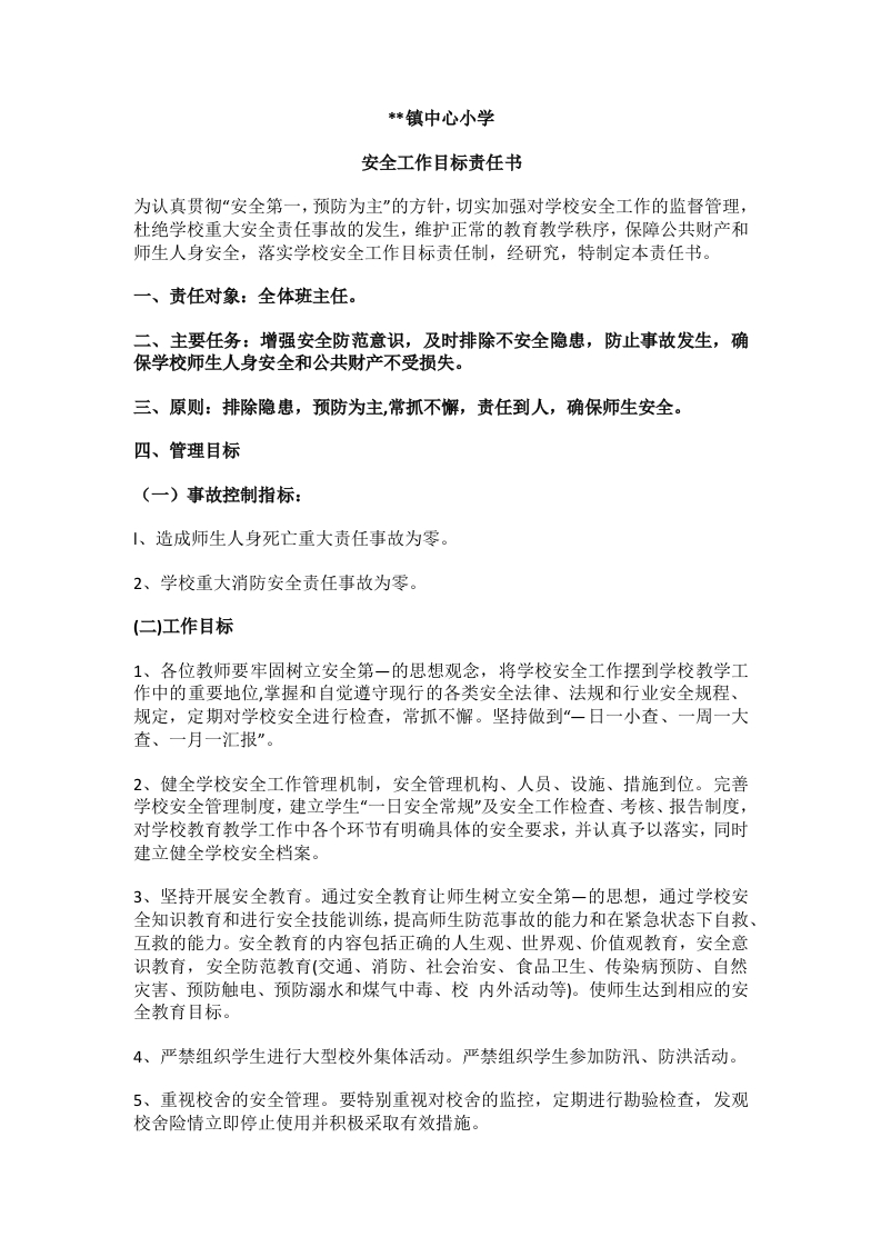 2.学校安全工作目标责任书