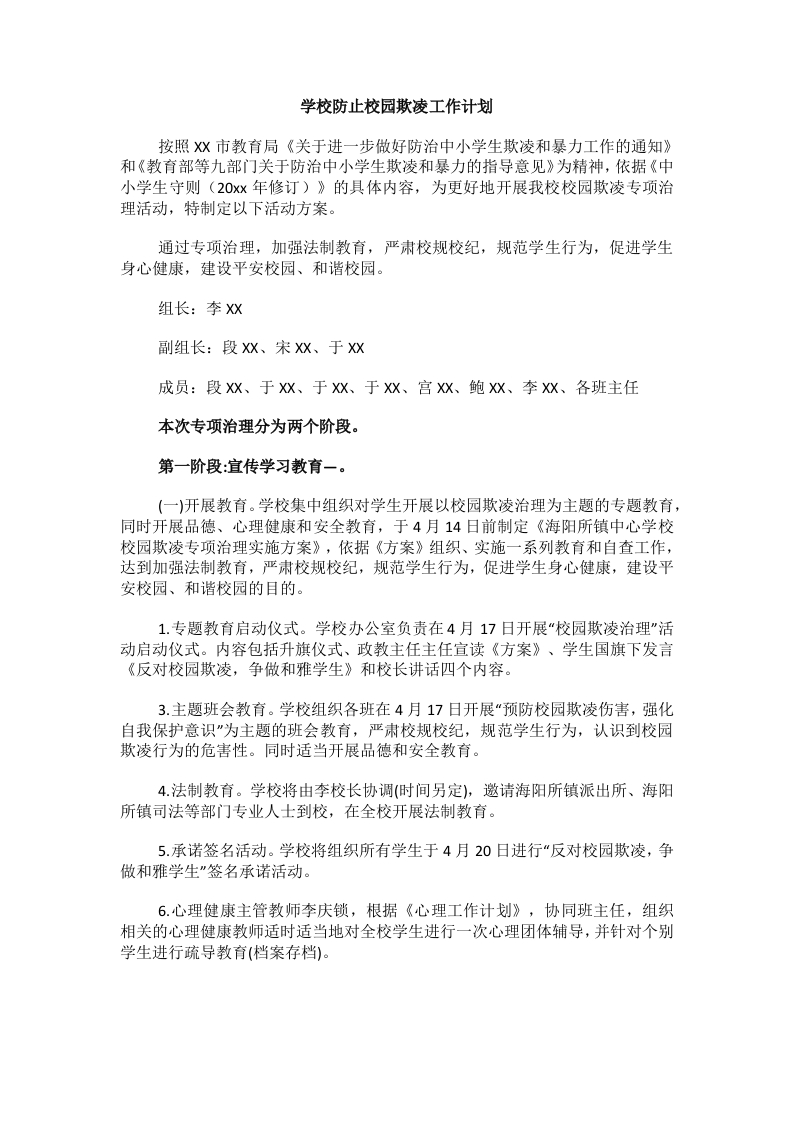 2.学校防止校园欺凌工作计划