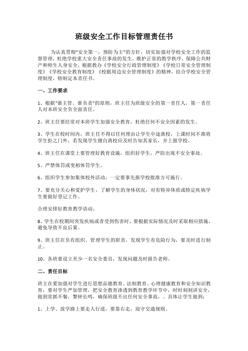 首页安全资料16.班级安全工作目标管理责任书