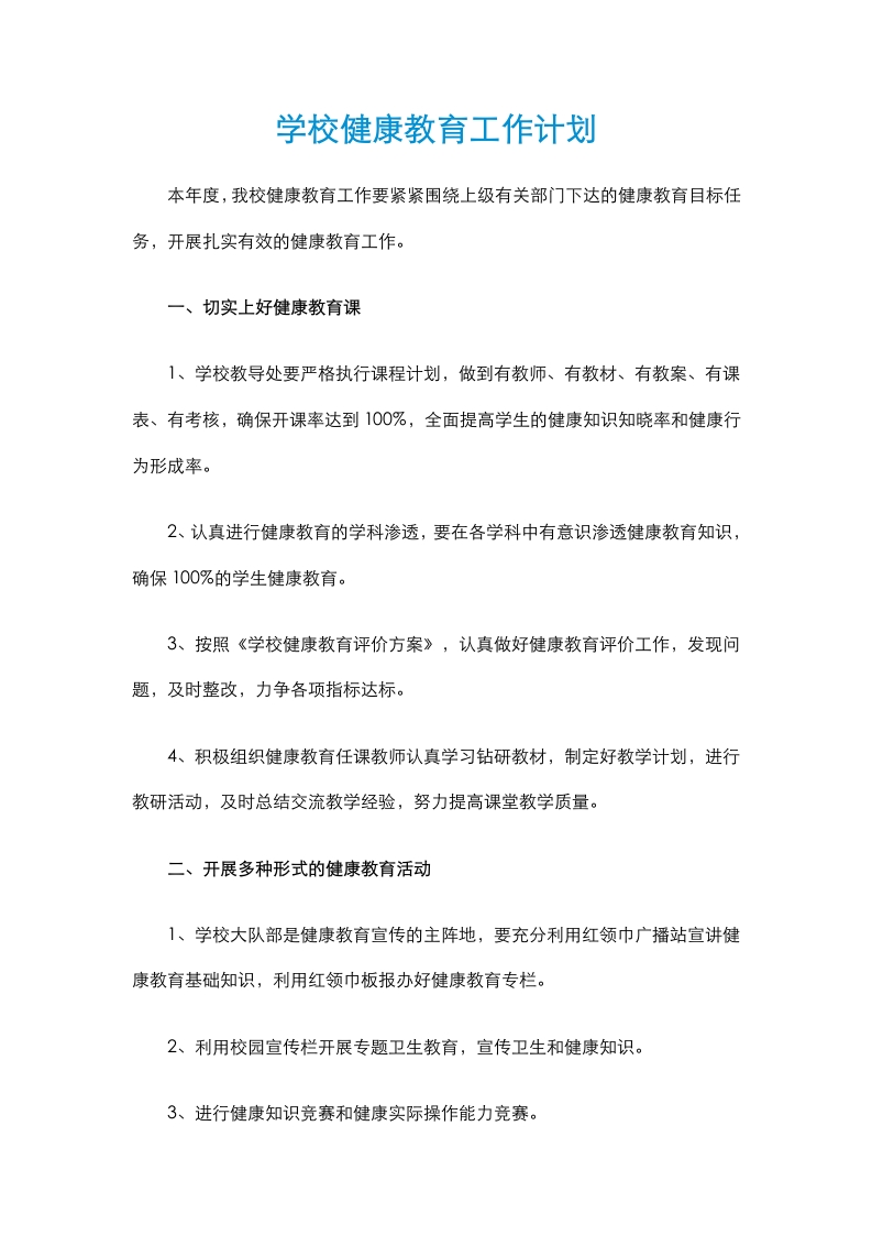 首页安全资料18.学校健康教育工作计划