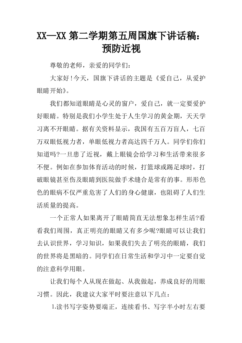 XX—XX第二学期第五周国旗下讲话稿:预防近视[推荐]