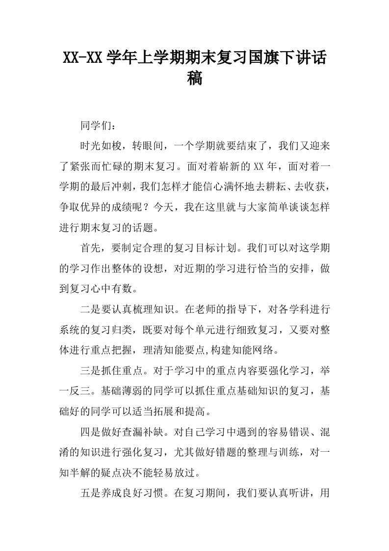 XX-XX学年上学期期末复习国旗下讲话稿[推荐]