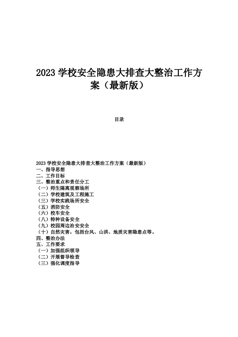 2023学校安全隐患大排查大整治工作方案案(最新版)