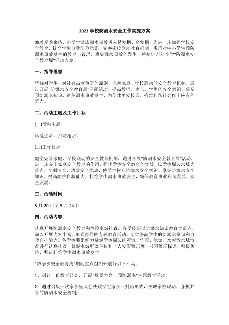 首页安全资料2023学校防溺水安全工作实施方案3