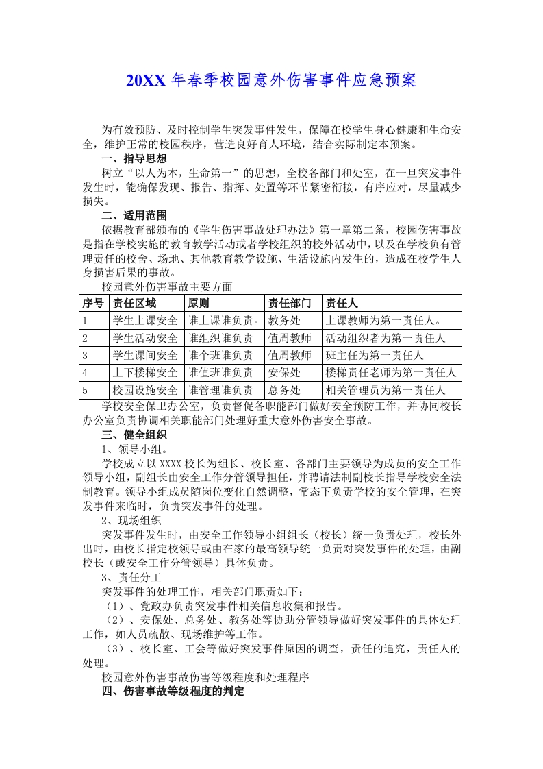 首页安全资料20XX年春季校园意外伤害事件应急预案