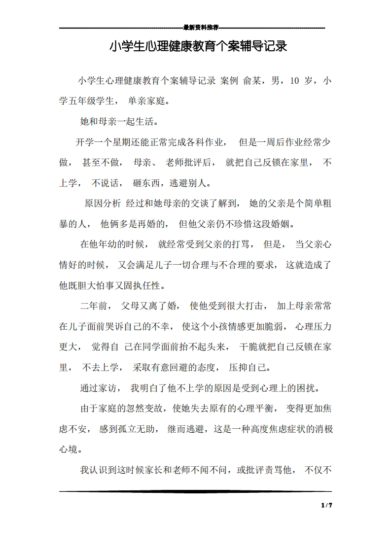 首页安全资料23.小学生心理健康教育个案辅导记录