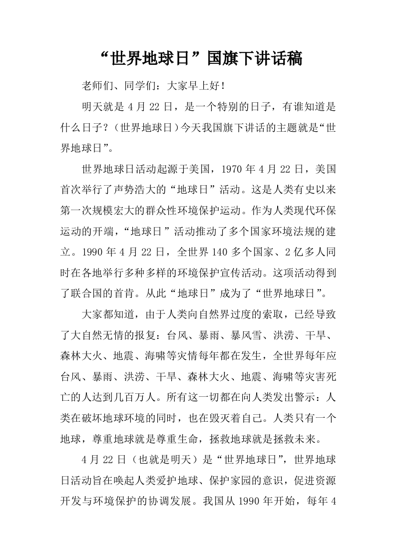 首页教师资料“世界地球日”国旗下讲话稿[推荐]