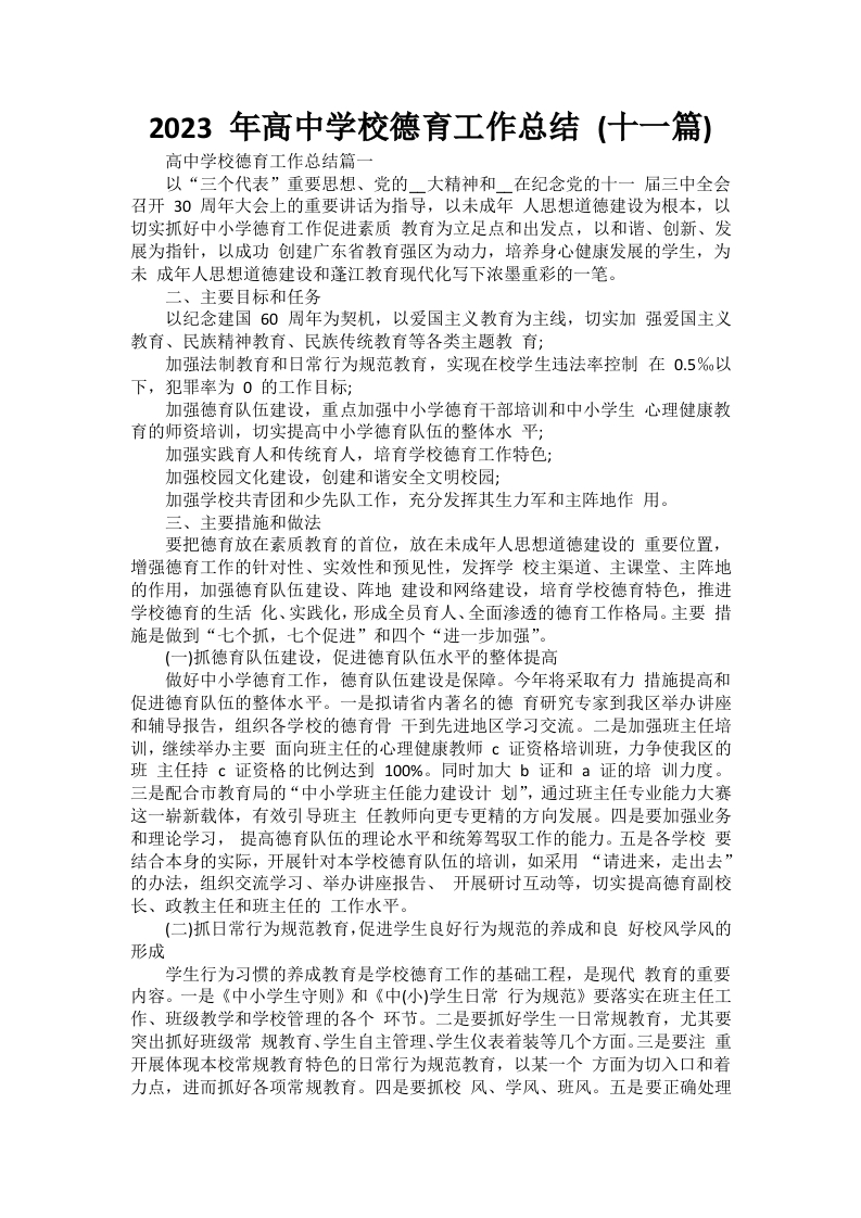2023 年高中学校德育工作总结