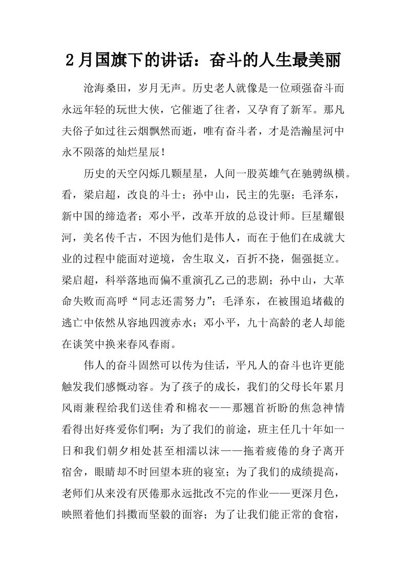 2月国旗下的讲话:奋斗的人生最美丽[推荐]