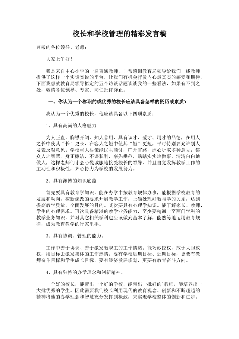 176.校长和学校管理的精彩发言稿