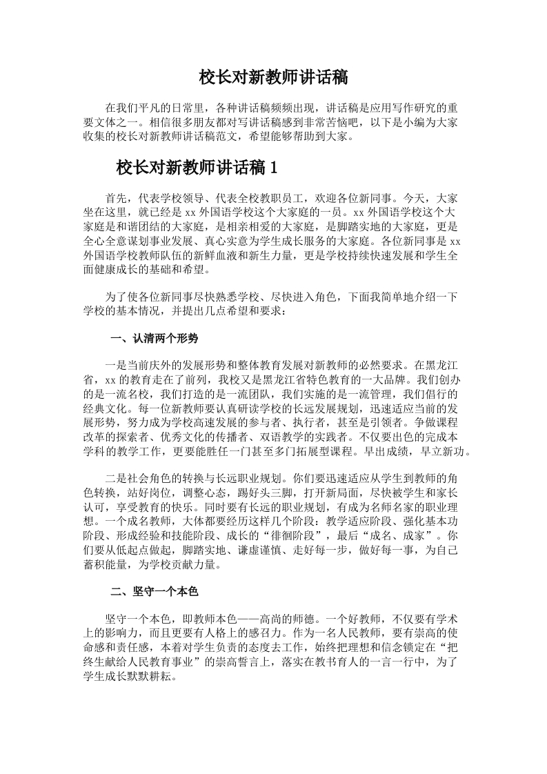 181.校长对新教师讲话稿