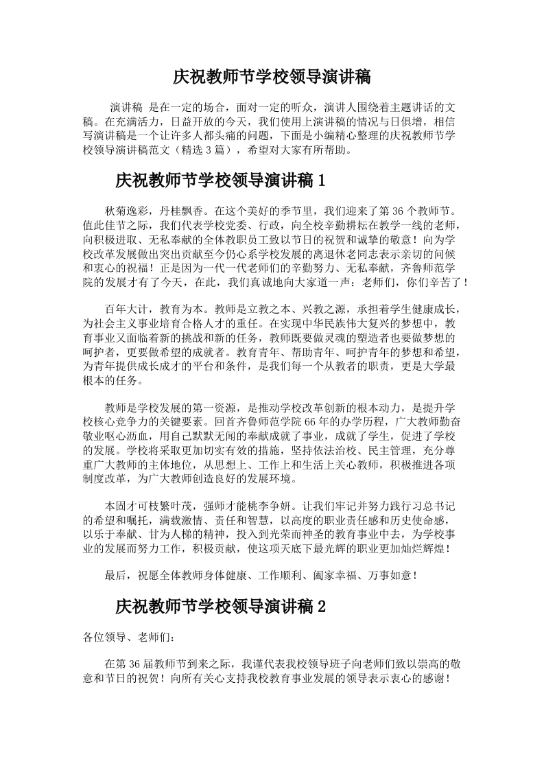 首页校长资料240.庆祝教师节学校领导演讲稿