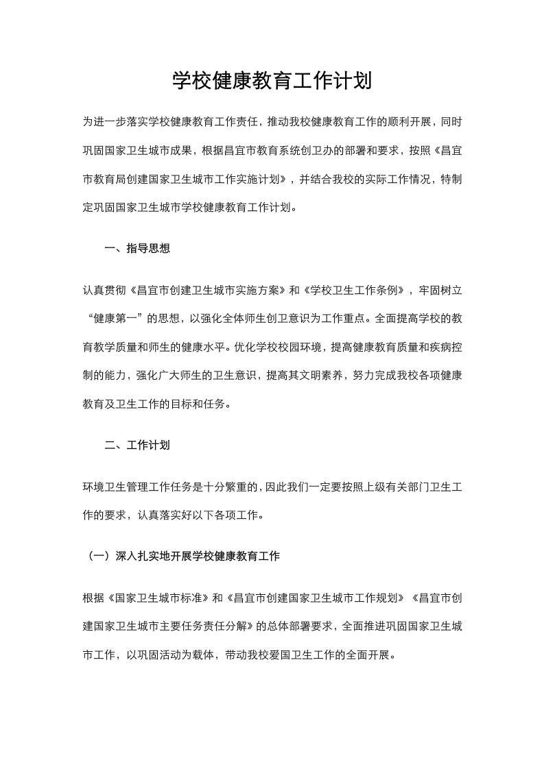 1.学校健康教育工作计划