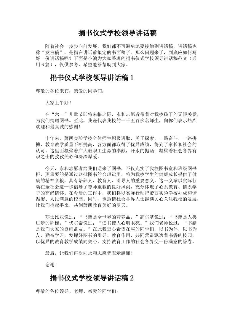 90.捐书仪式学校领导讲话稿