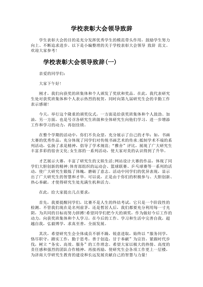 99.学校表彰大会领导致辞