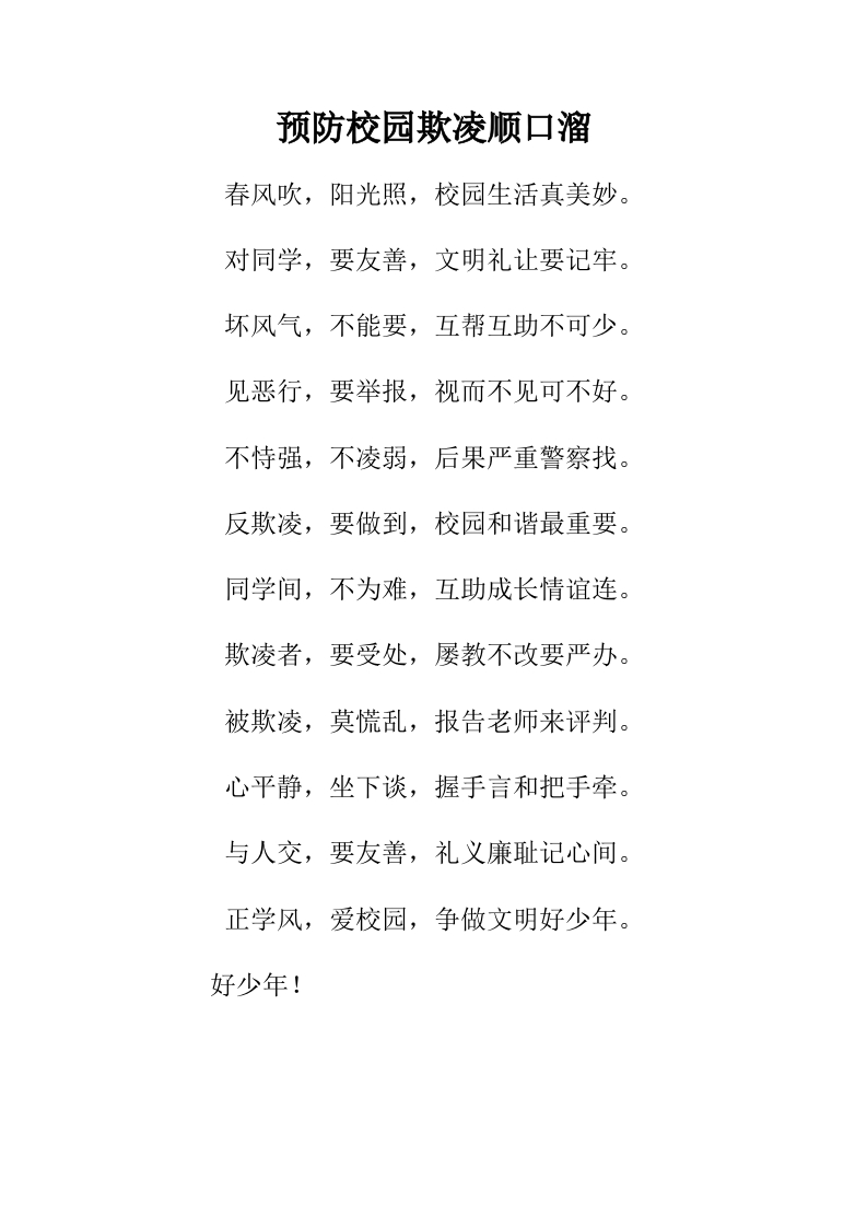 预防校园欺凌顺口溜