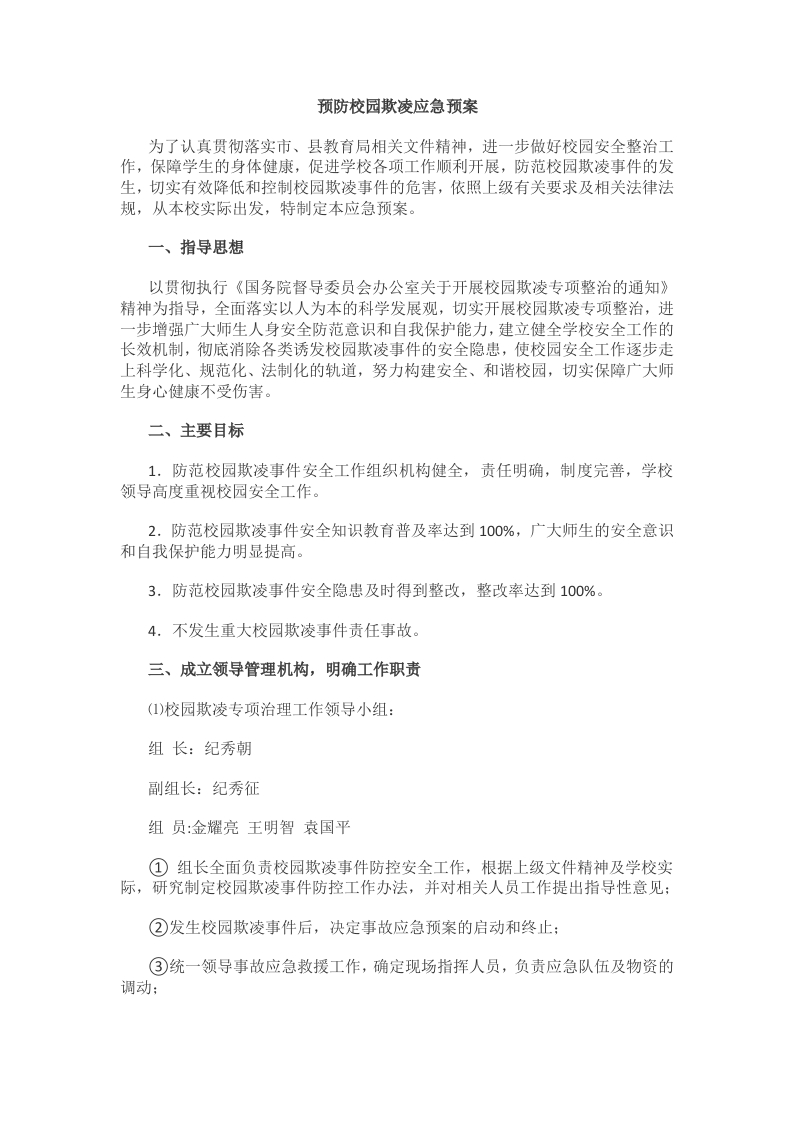 预防校园欺凌应急预案