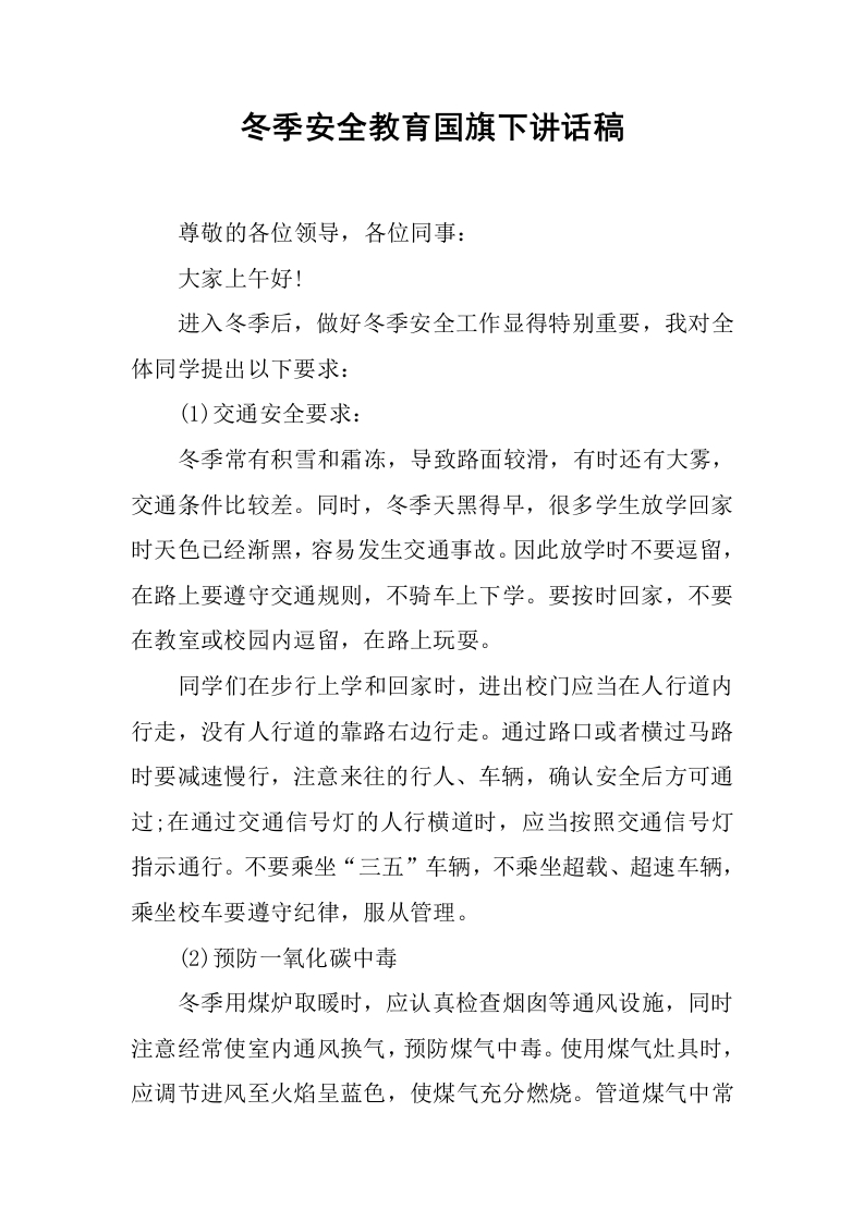冬季安全教育国旗下讲话稿[推荐]
