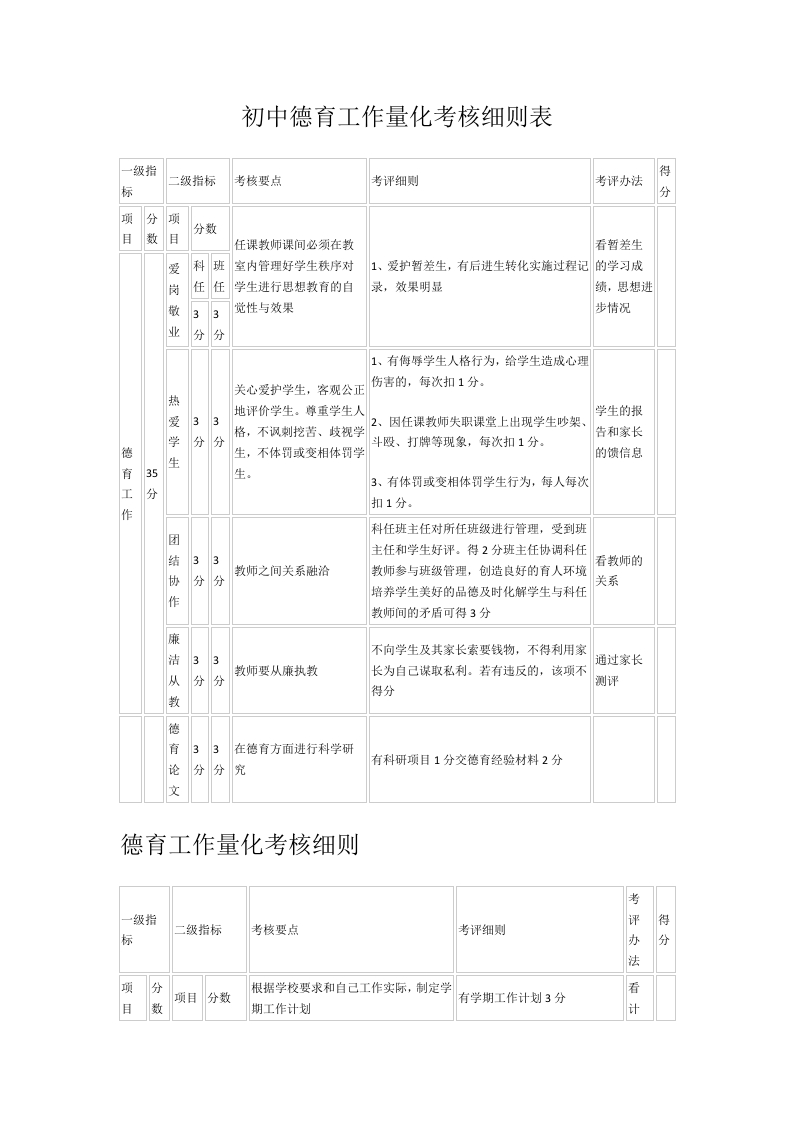 首页教研资料初中德育工作量化考核细则表