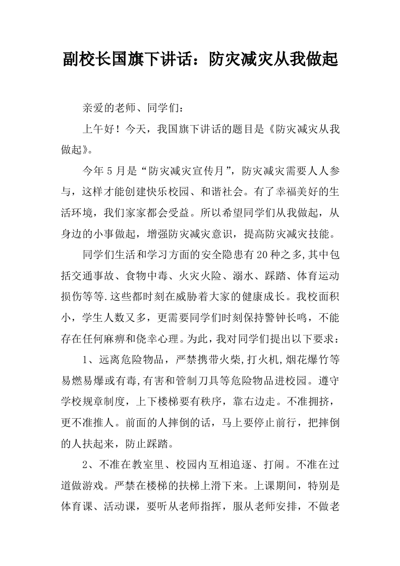 副校长国旗下讲话:防灾减灾从我做起[推荐]