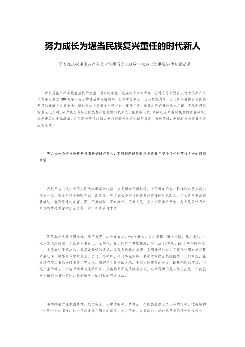 努力成长为堪当民族复兴重任的时代新人PPT学习在100大会上的重要讲话专题课件模板