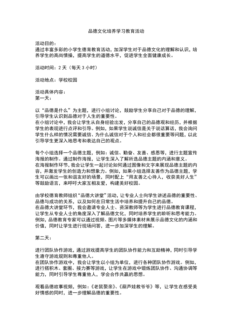 品德文化培养学习德育教育活动