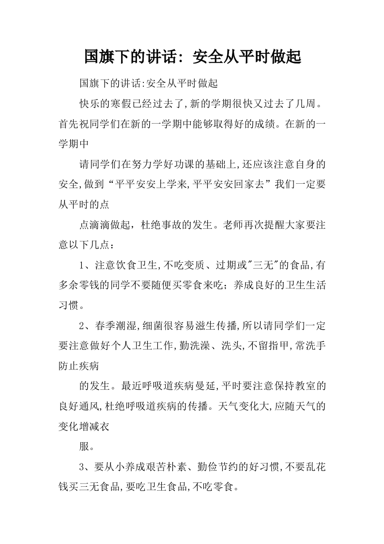 首页德育资料国旗下的讲话- 安全从平时做起[推荐]