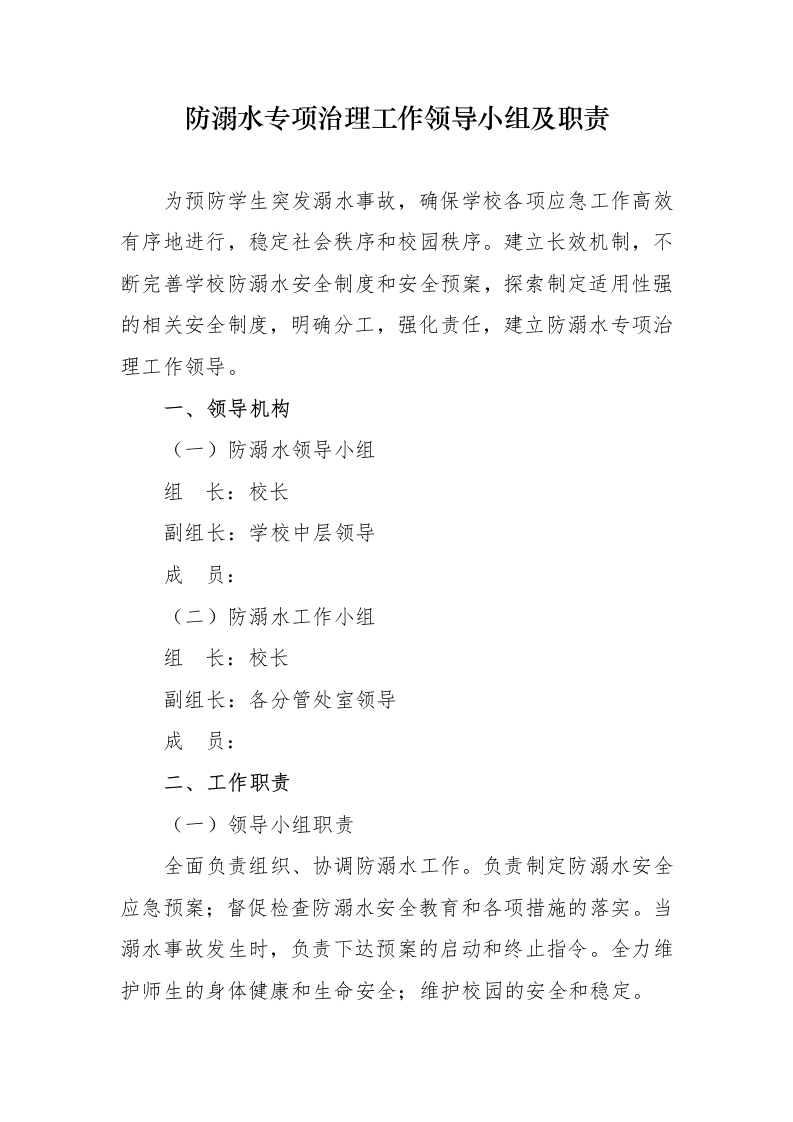 首页安全资料1 防溺水专项治理工作领导小组及职责