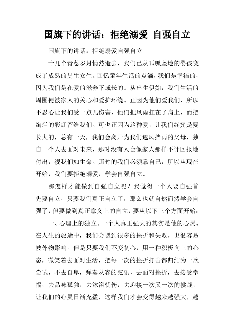 国旗下的讲话:拒绝溺爱 自强自立[推荐]