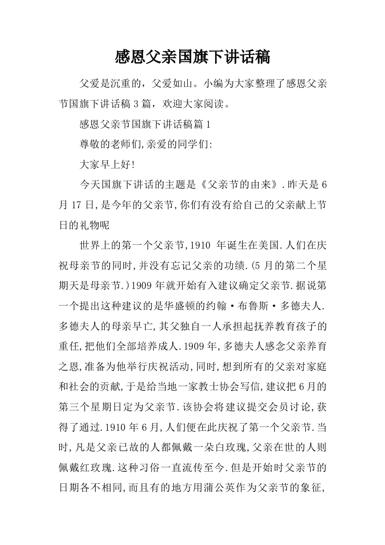 首页德育资料感恩父亲国旗下讲话稿[推荐]