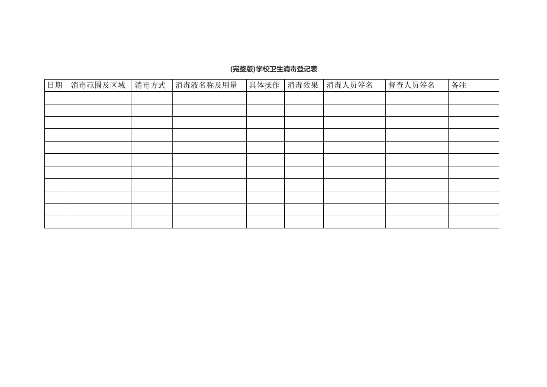 (完整版)学校卫生消毒登记表