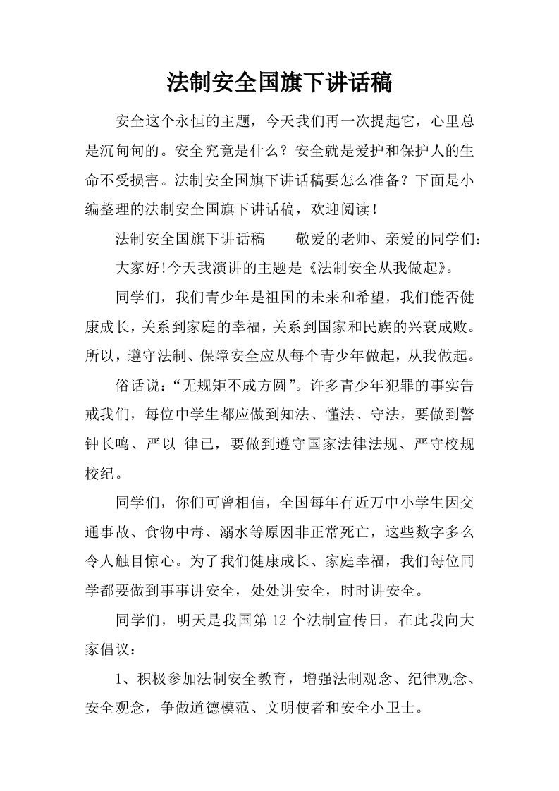 法制安全国旗下讲话稿[推荐]