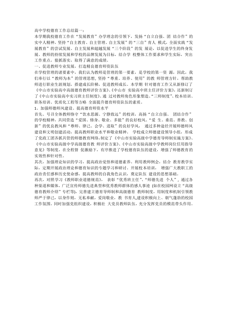 高中学校德育工作总结篇一