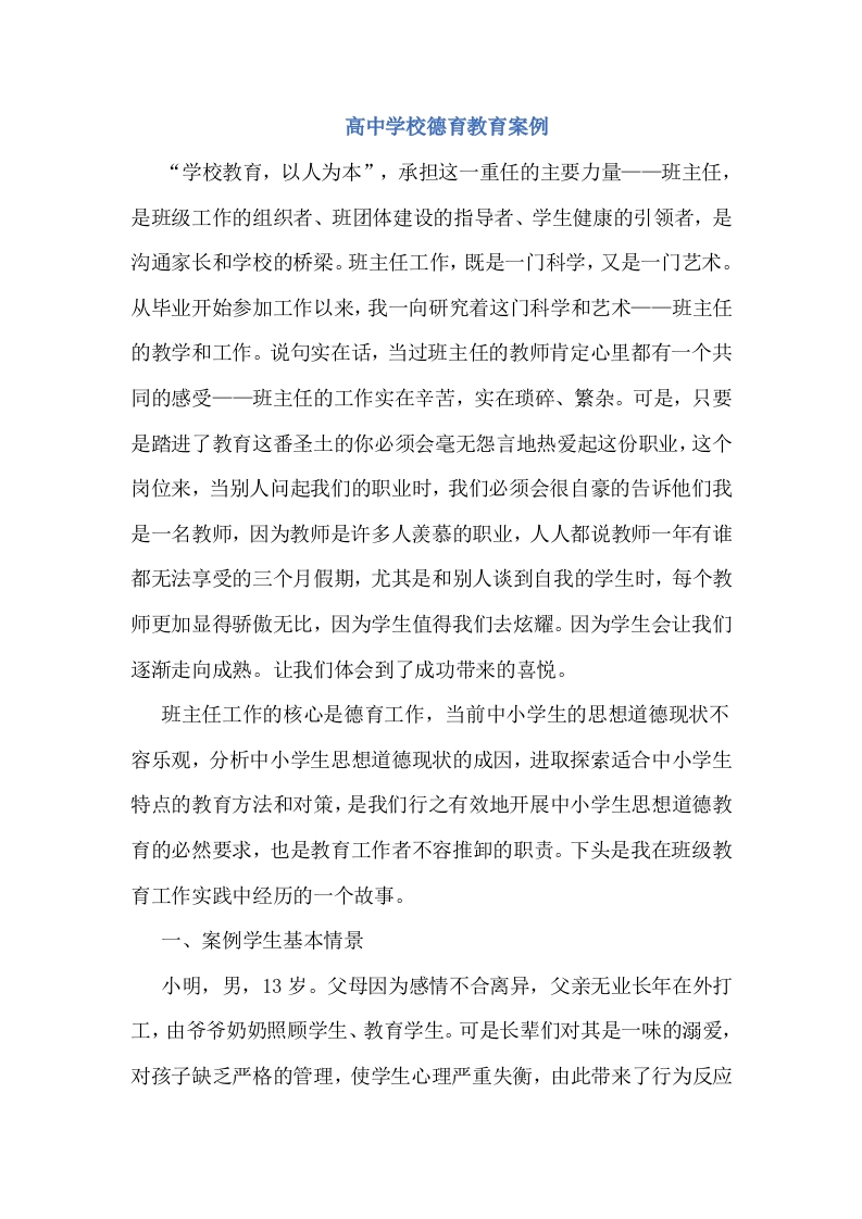 高中学校德育教育案例