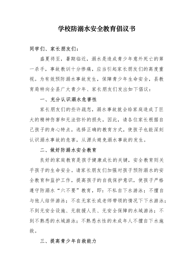 首页安全资料11 学校防溺水安全教育致学生、家长倡议书