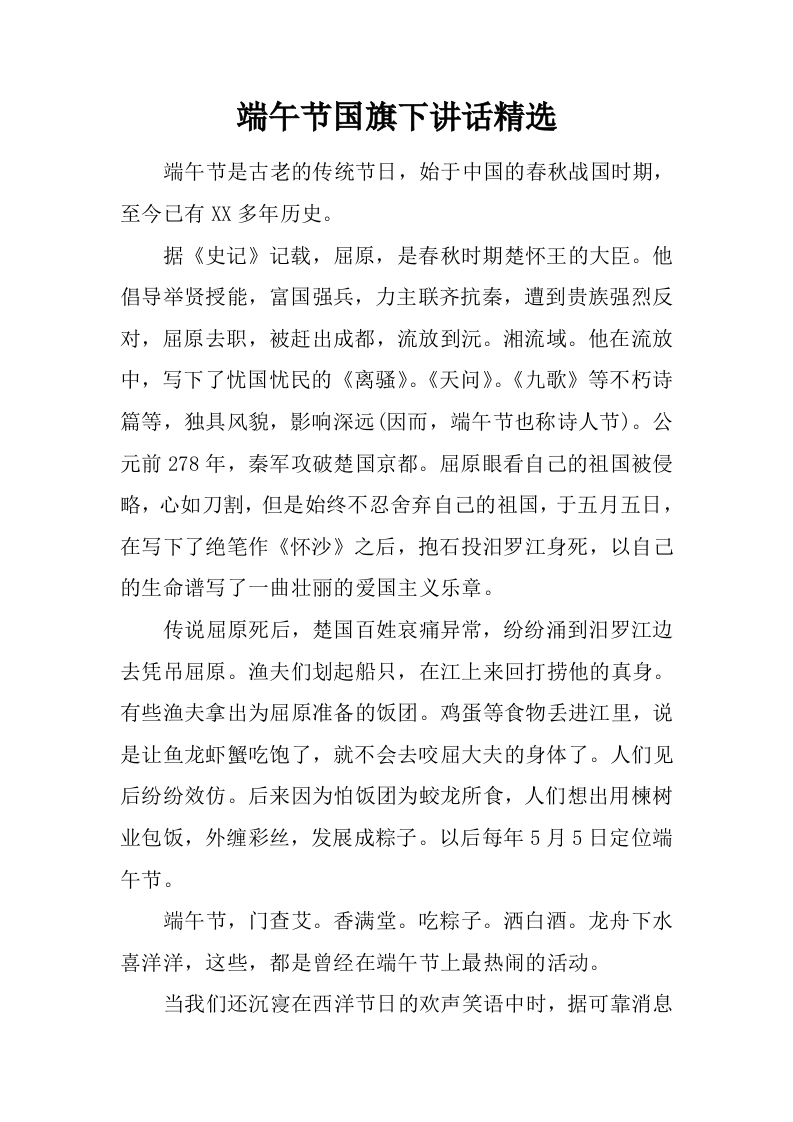 端午节国旗下讲话精选[推荐]