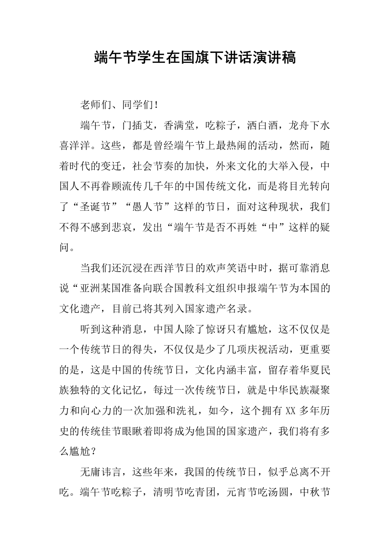 端午节学生在国旗下讲话演讲稿[推荐]