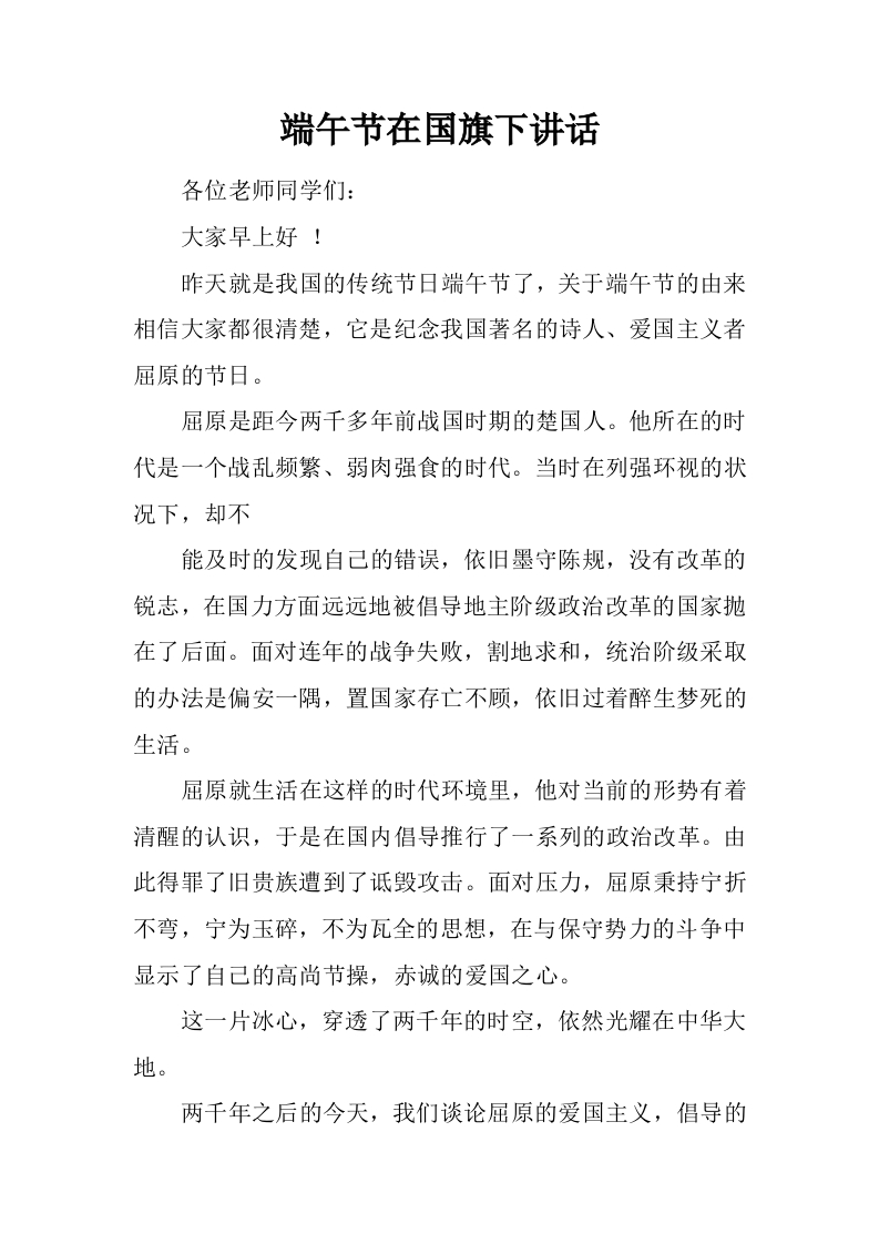 首页其他资料端午节在国旗下讲话[推荐]