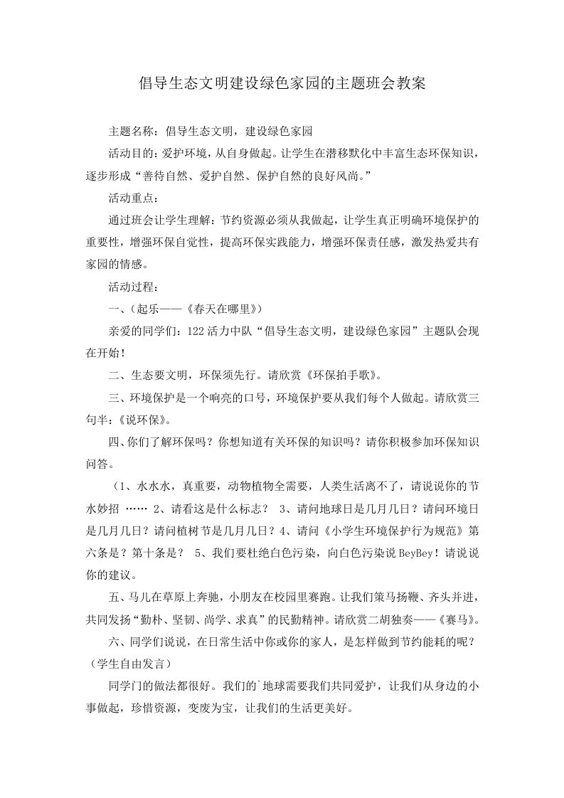 首页班主任库倡导生态文明建设绿色家园的主题班会教案_2